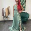 Nádherné dlhé šaty so striebornými ramienkami. V páse prestrihnuté. Od pása dole suknička s rázporkom. Zapínanie vzadu na zips. Kvalitné spracovanie. POZOR Turecké číslovanie ! +1veľkosť