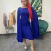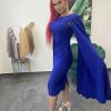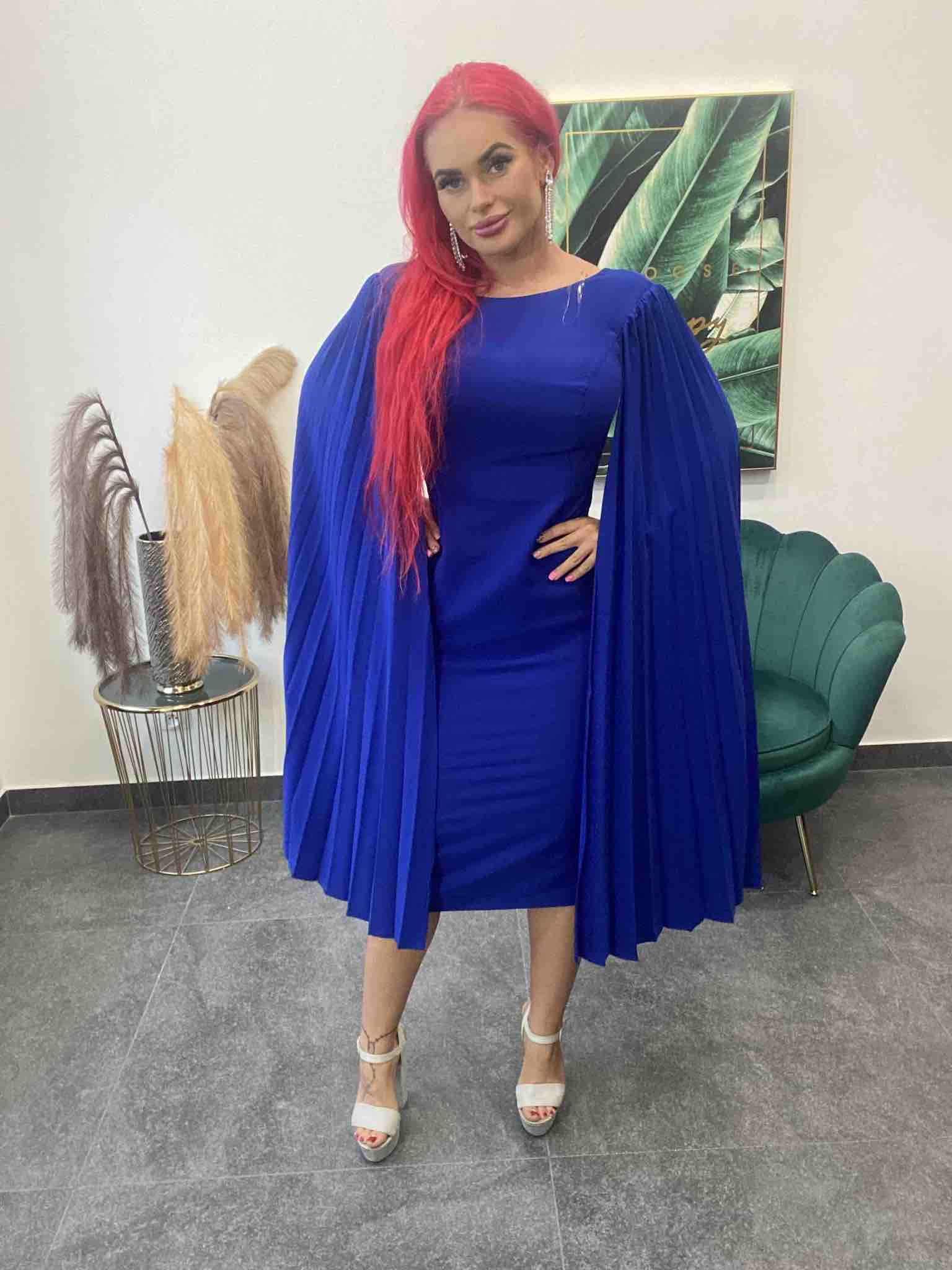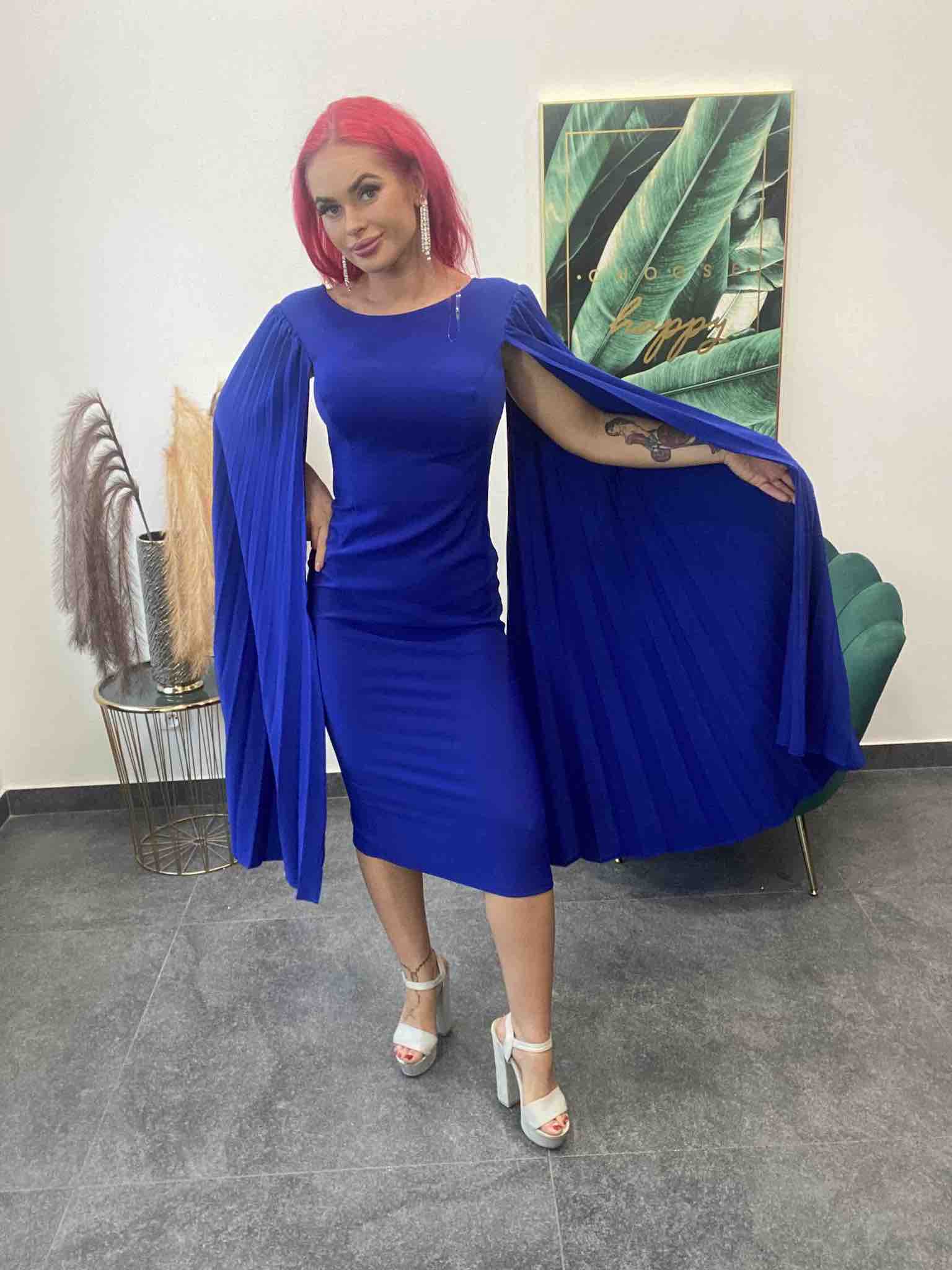 Elegantné spoločenské šaty s voľnými padavými rukávmi – kráľovsky modré